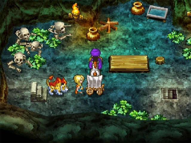 | 7 | Antre de la bête, une lueur sur le sol près d'un squelette. |