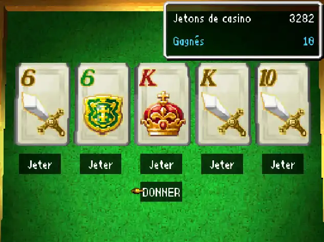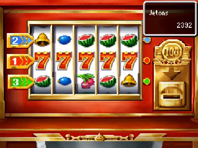 Les machines à sous sont présentes au sein des 3 casinos. Leur principe est simple : misez des jetons pour faire tourner des rouleaux avec des symboles, puis vous remportez des jetons en fonction des combinaisons de symbole obtenues. Quand vous jouez, les combinaisons que vous pouvez obtenir et ce qu'elles peuvent vous rapporter sont indiquées sur l’écran du haut. Plus vous misez de jetons, plus vous pouvez remporter gros.