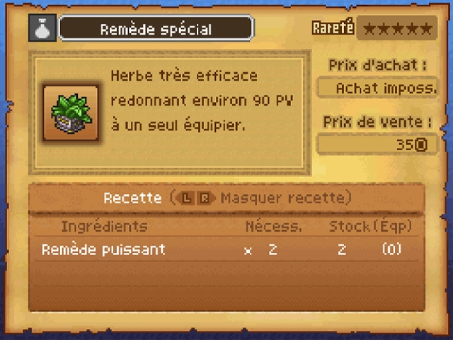 La façon la plus simple d’obtenir des remèdes spéciaux est de les fabriquer grâce à l’alchimarmite.